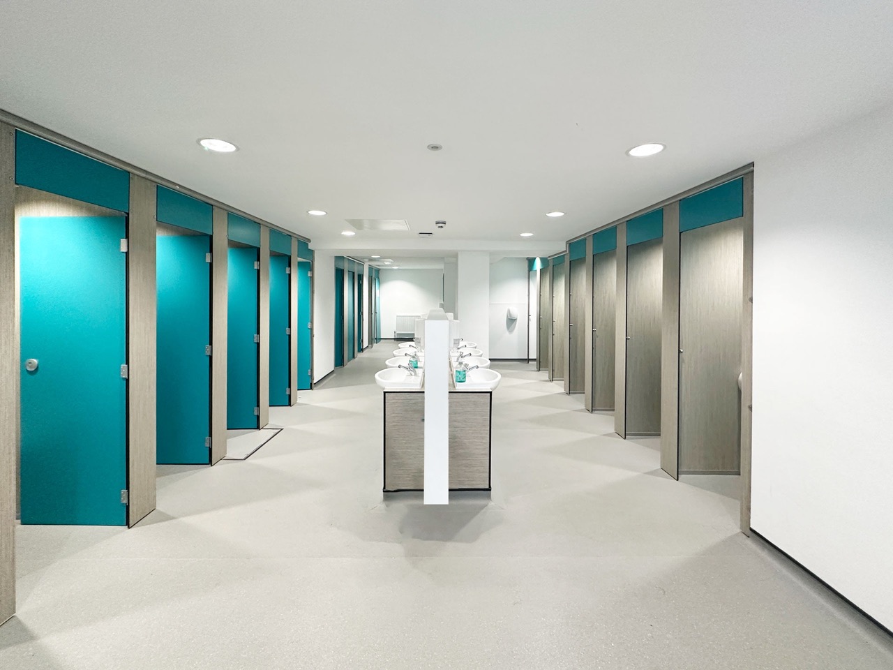 The final result is a refreshed and striking washroom scheme that meets the practical needs of the school’s staff and students. The washrooms are designed to be vibrant and durable, accommodating continuous use over the years.