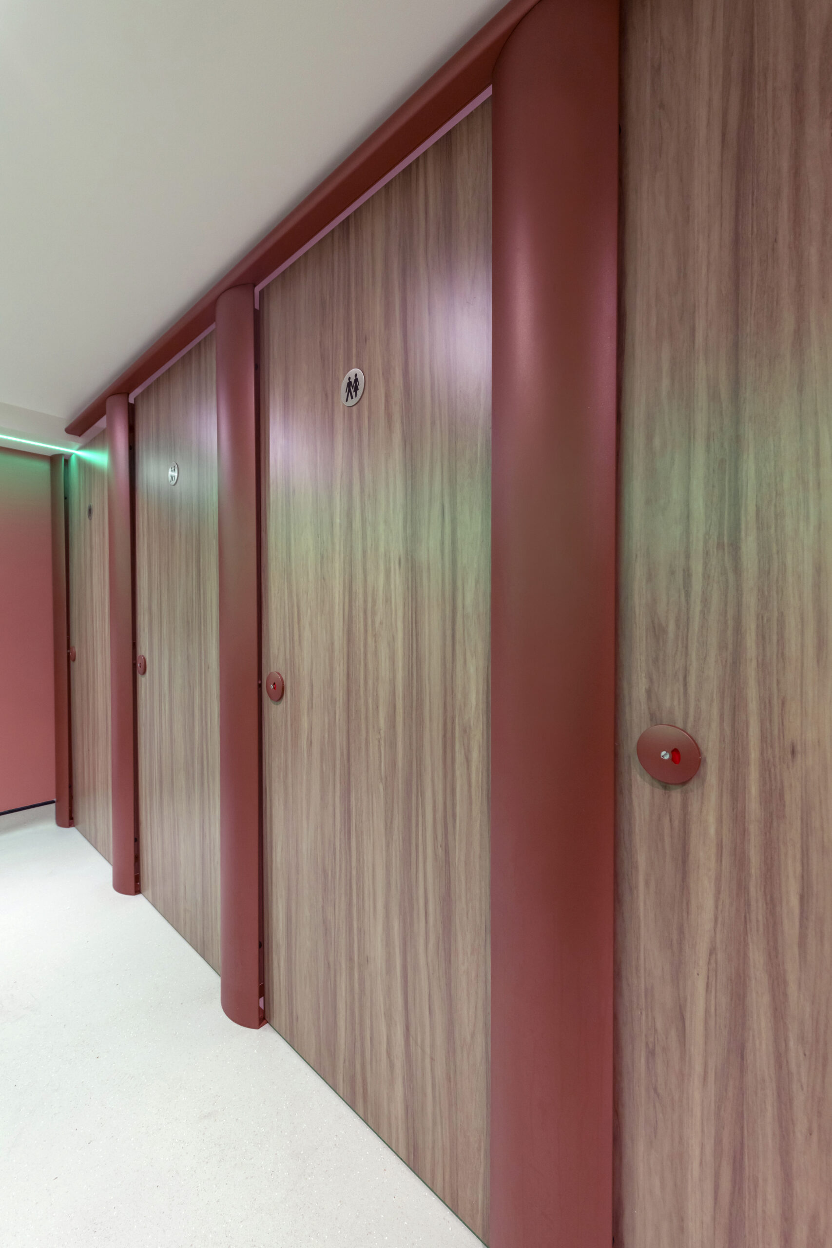 For large-scale washroom projects featuring 20 cubicles or more, we offer the option to powder coat hardware to match any RAL colour. This allows for greater design flexibility and to create a cohesive, custom finish that aligns perfectly with the wider interior scheme or brand palette.