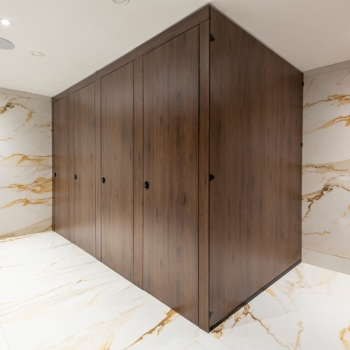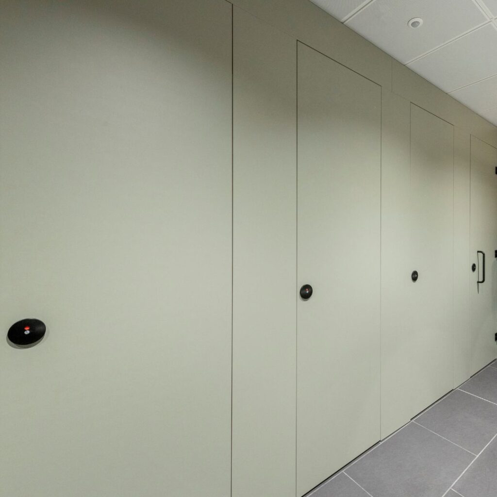 Due to the nature of HPL, our Identity range isn’t suitable for shower cubicles, or wet areas like staff changing rooms. However, we can fabricate Identity using water-resistant Compact Grade Laminate with a curated colour range.