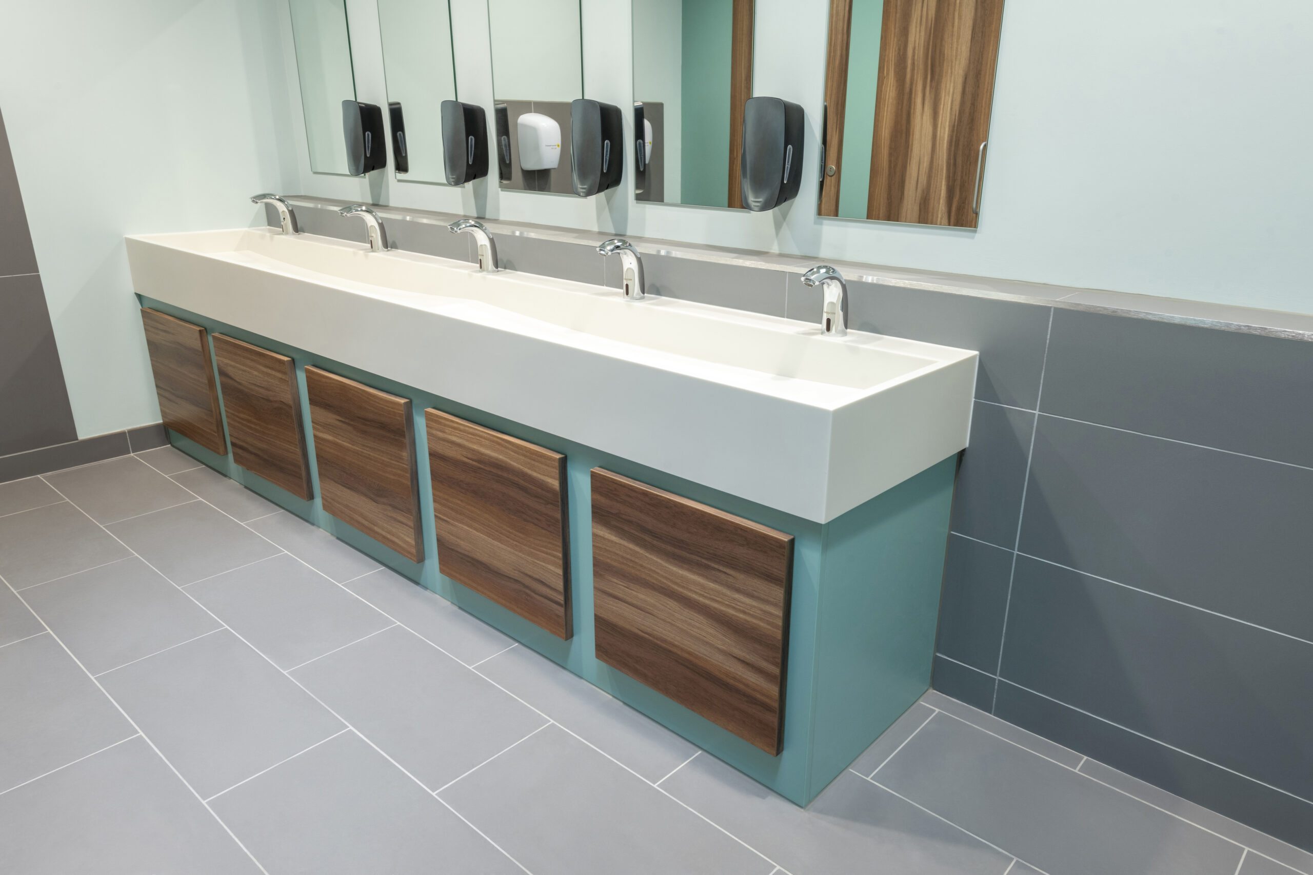 Our team at Concept understand the vital role that forward-thinking washroom design plays in creating an aspirational and inclusive environment for your employees and visitors. This is why we strive to create exceptional commercial washroom products such as our Solid Surface Wash Troughs, that offer a minimalist modern look that complements the design of today’s workplaces. Beyond aesthetics, we’re proud of our corian wash troughs’ robust construction, which ensures they can meet the needs of your staff for years to come.
