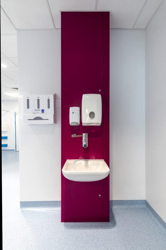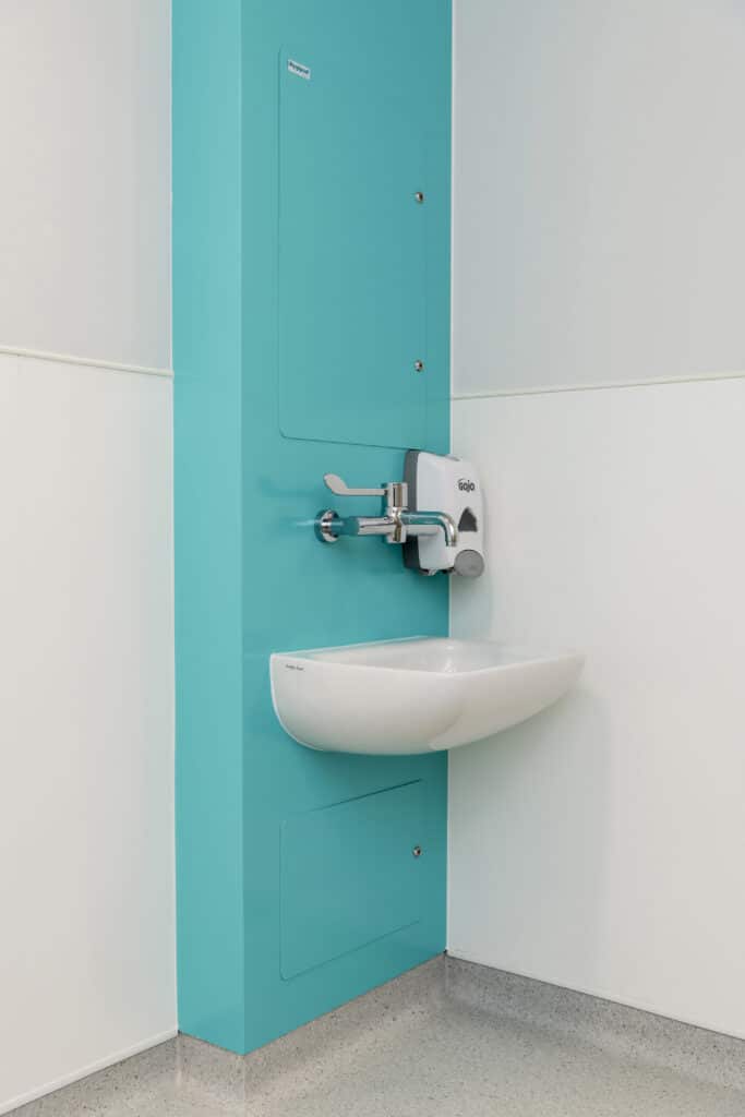 Our HTM Duct Panel systems provide a robust, compliant solution for concealing plumbing and building services behind sanitary assemblies in healthcare washrooms and clinical environments.