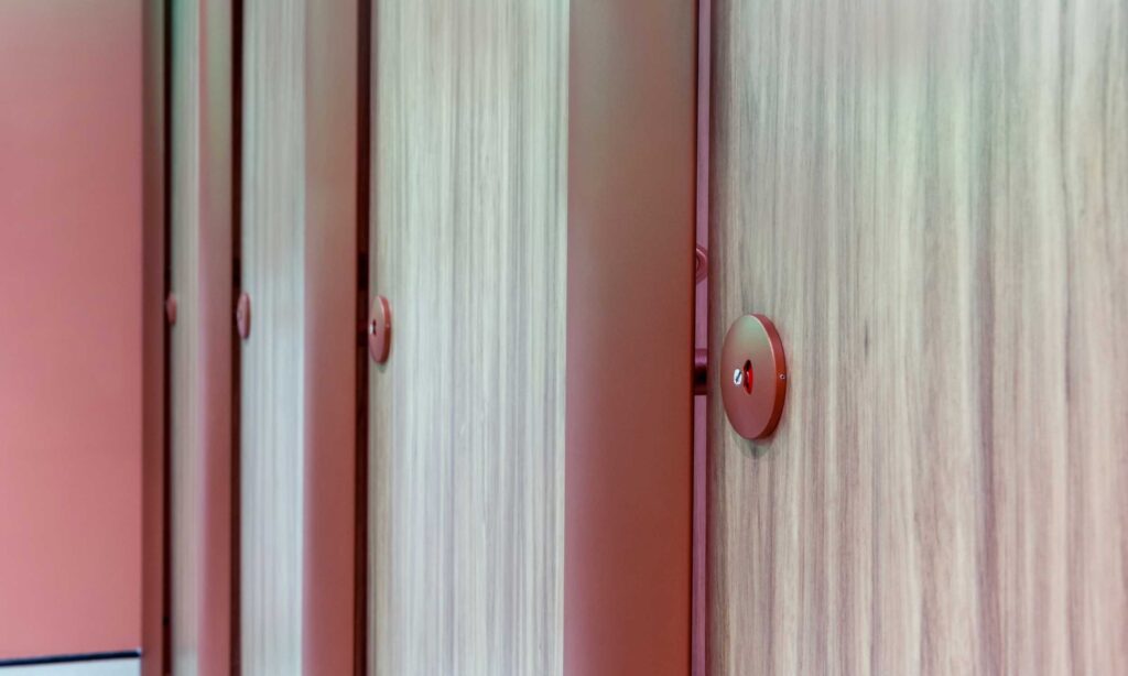 For large-scale washroom projects featuring 20 cubicles or more, we offer the option to powder coat hardware to match any RAL colour. This allows for greater design flexibility and to create a cohesive, custom finish that aligns perfectly with the wider interior scheme or brand palette.